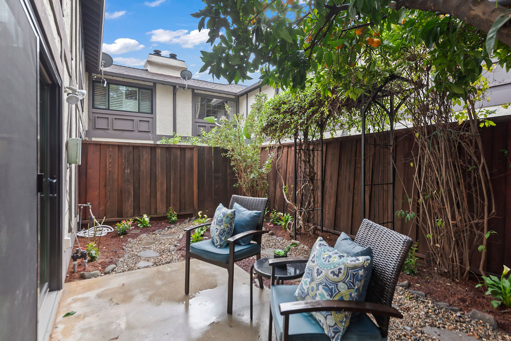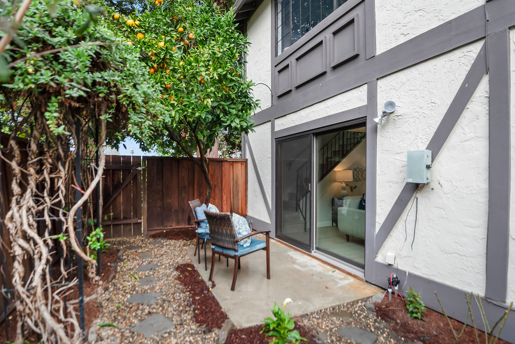 Outdoors, enjoy a charming backyard with a mature orange tree known to produce hundreds of fruits each season and thoughtfully designed patio area perfect for outdoor dining or lounging.